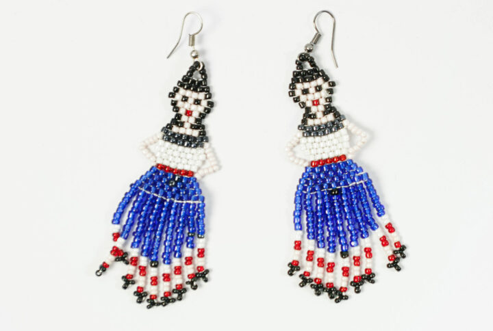Handmade with intricate bead patterns, these earrings highlight bold symmetry and artistic expression with a refined finish.